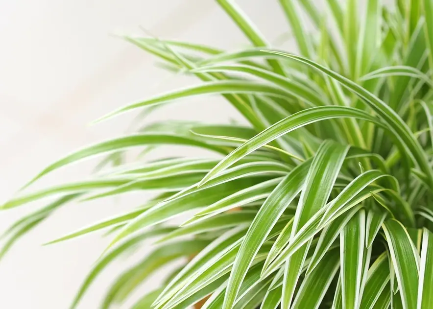 Easy-to-grow indoor plant with arching green leaves and small offshoots.